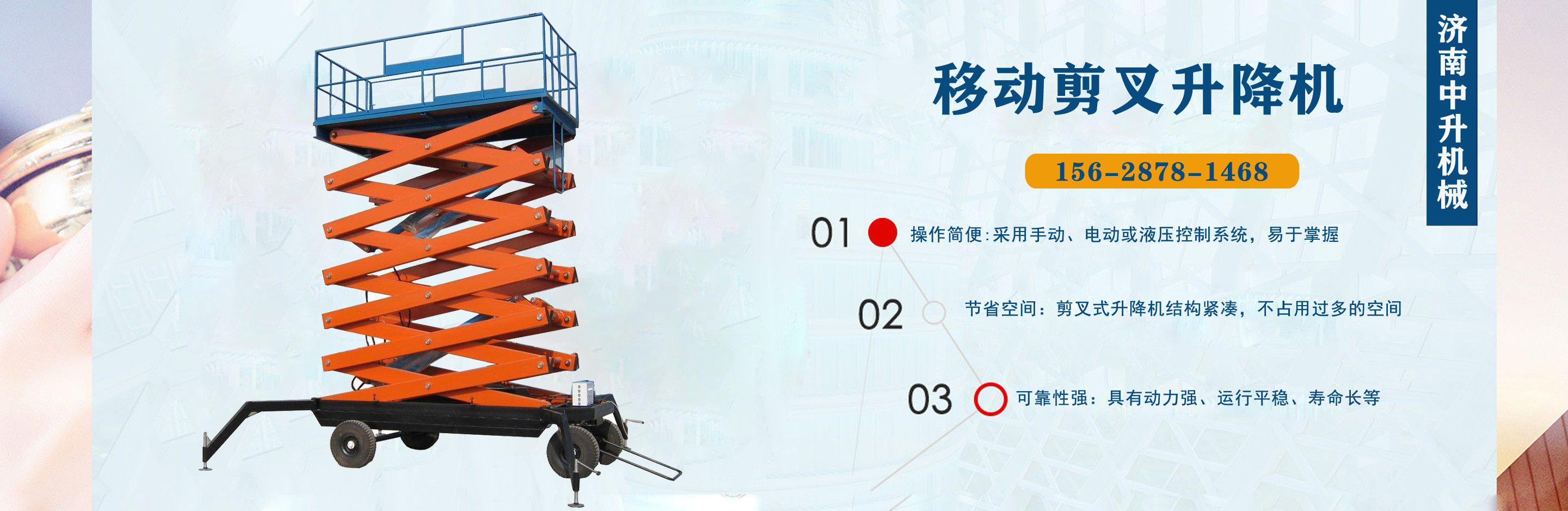 濟南中升機械制造有限公司主營移動升降機,小型移動升降機,移動式升降機,移動剪叉升降機,移動剪叉式升降機等產品,信譽良好,歡迎前來咨詢訂購!  在銷售上,尊重每一個客戶,做到保質、保量及時供貨;在售后服務上,以較短的時間,用較快的速度解決,終身追蹤服務。  公司始終以“品質為本,服務至上”為公司宗旨。致力于提供高品質的產品,完善的服務,快捷的供貨,無論您身處何方,都能感受到我們的優良服務。客戶至上,誠信為本。  歡迎各界朋友來電,來函垂詢,選購!...